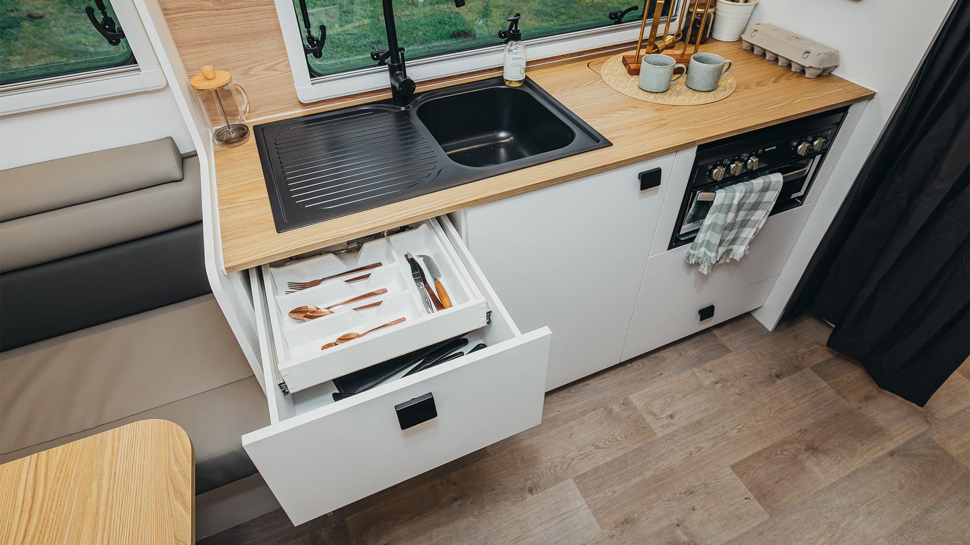 • Clever double kitchen drawer with cutlery insert